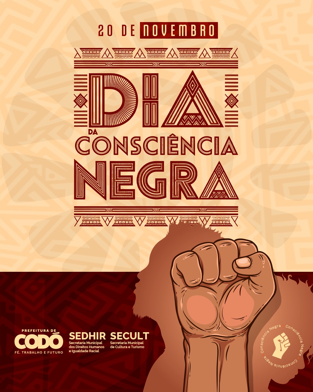 A Prefeitura de Codó, por meio da Secretaria Municipal de Direitos Humanos e Igualdade Racial e da Secretaria Municipal de Cultura e Turismo, realiza no dia 20 de novembro uma grande programação em alusão ao Dia da Consciência Negra, data que reforça a importância da luta por igualdade, respeito e reconhecimento da população negra no Brasil.