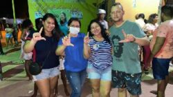 No encontro, que respeitou as normas sanitárias, a candidata discutiu projetos para a comunidade.