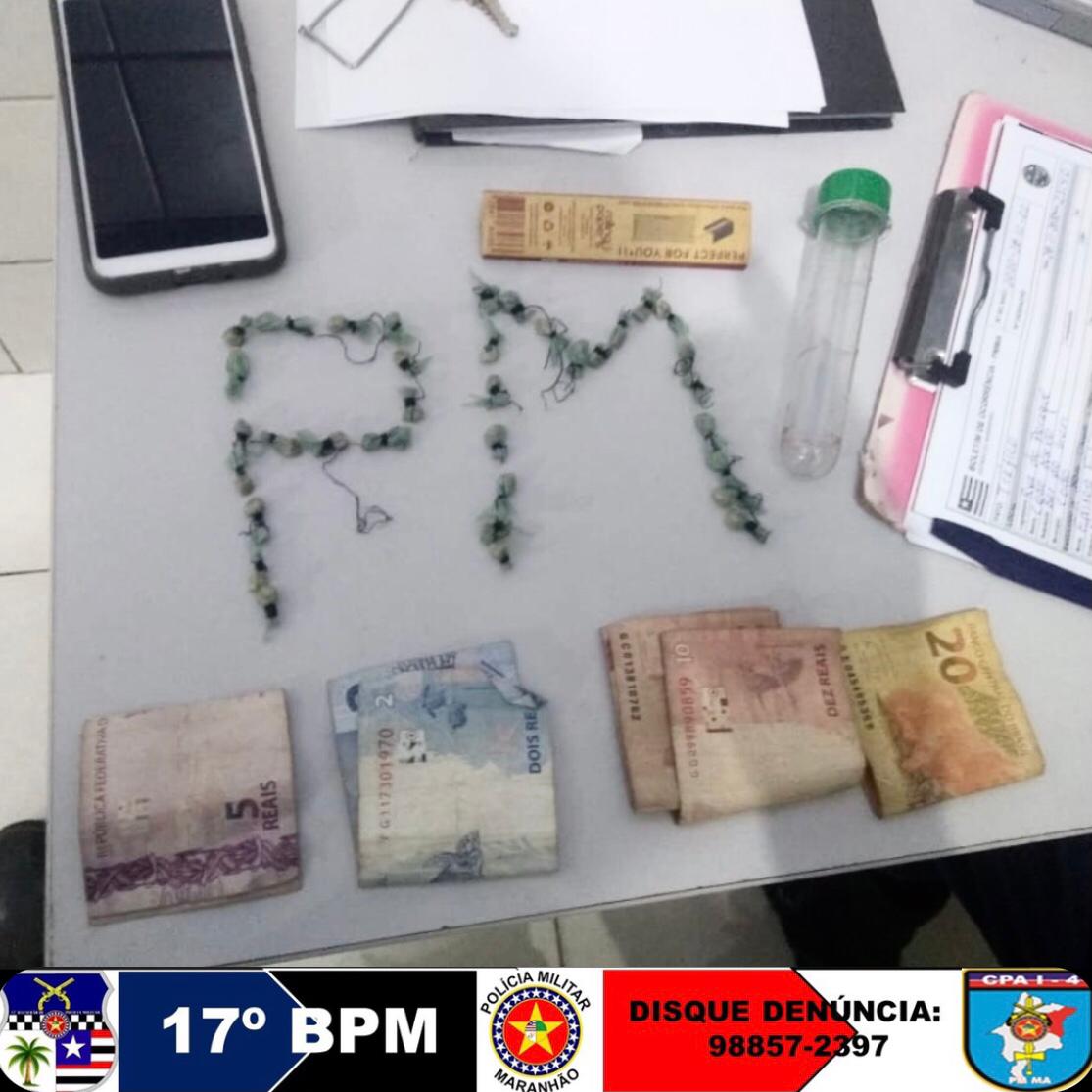 Os indivíduos estavam em um bar no bairro Codó Novo e escondiam o material em um recipiente. Foram aprendidas 35 (trinta e cinco) “cabeças” de crack e 49 (quarenta e nove) reais.